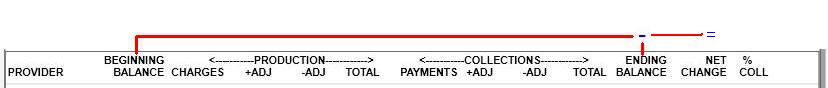 Note: Collections are inherently negative numbers, because they reduce a patient's balance. They are presented on the report as positive numbers, but when calculated later into the Ending Balance the Total Collection will again be treated as a negative number.